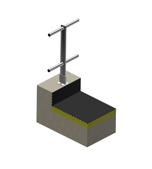 Se instala en el perímetro de las terrazas técnicas inaccesibles para proteger a los operarios durante las operaciones de mantenimiento. Este dispositivo se puede instalar en las terrazas con peto y está disponible en versión bruta, termolacada y anodizada. Cumple con las normativas europeas EN 14122-3: 2017 con un espacio entre soportes de 1.60m.